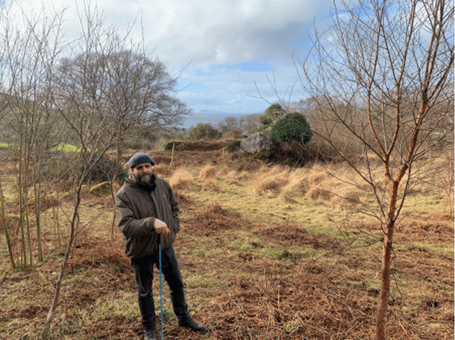 The topic of my current Master’s thesis at Trinity is how to educate about climate change. So, on a recent trip to the Beara peninsula, I could not pass up the opportunity to talk with Eoghan Daltun, whose important book on rewilding, An Irish Atlantic Rainforest, I had just finished. Eoghan was kind enough to show me around and discuss his work, accompanied by his friendly collie, Charlie.